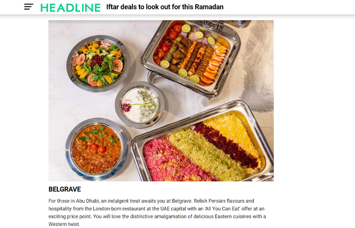 For those in Abu Dhabi, an indulgent treat awaits you at Belgrave. Relish Persian flavours and hospitality from the London-born restaurant at the UAE capital with an ‘All You Can Eat’ offer at an exciting price point. You will love the distinctive amalgamation of delicious Eastern cuisines with a Western twist.